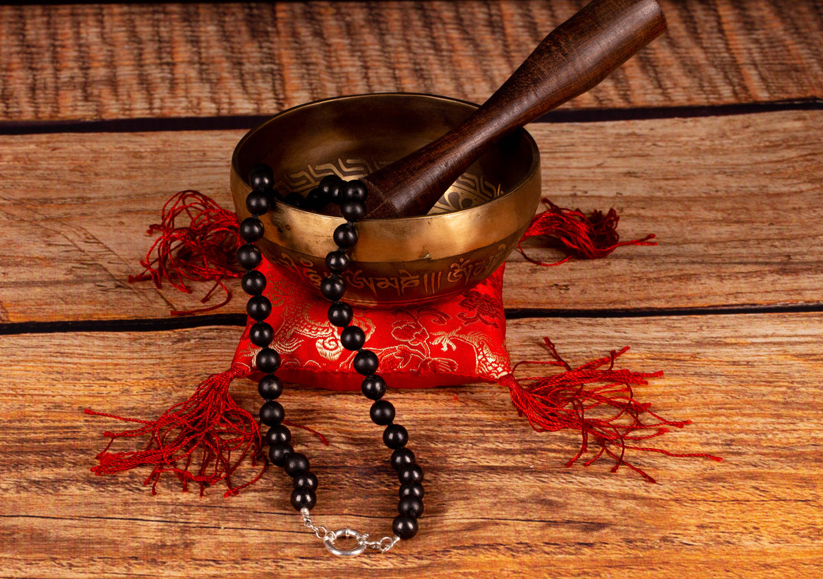 Natural Shungite beaded knotted necklace hand made with pure love.